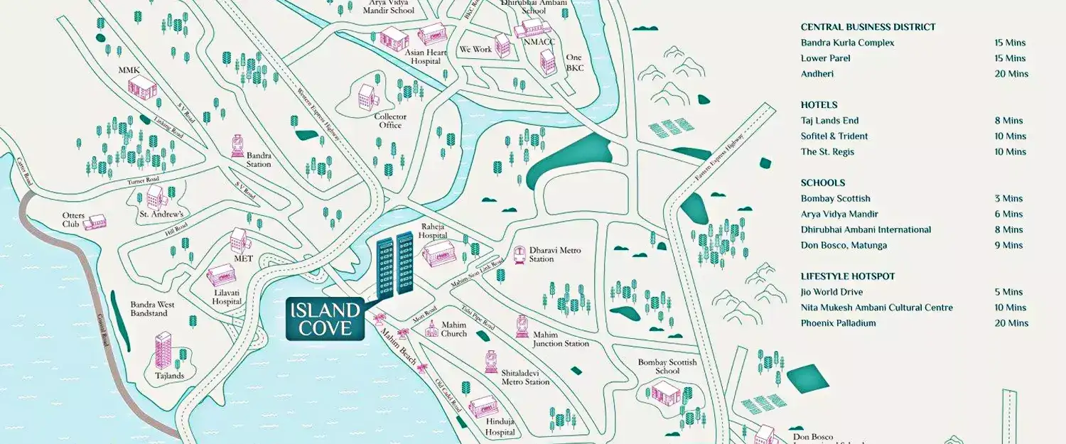 Welcome to Mahim. The doorway to the city of dreams, adorned with a timeless historical charm. Here, the bustle of the city greets you, and aspirations find their avenues. In the midst of it all, lies a sanctuary in the form of Island Cove Mahim, where everything you desire is within reach. Where your mornings begin with unobstructed views that stretch far beyond the city limits, with luxury apartments in Mahim that overlook the blue sea. Where every detail reflects a commitment to your comfort, with 2 and 3 BHK flats in Mahim’s first-ever gated community. Where memories can be made, shared and cherished. Where you can experience Mahim like never before.